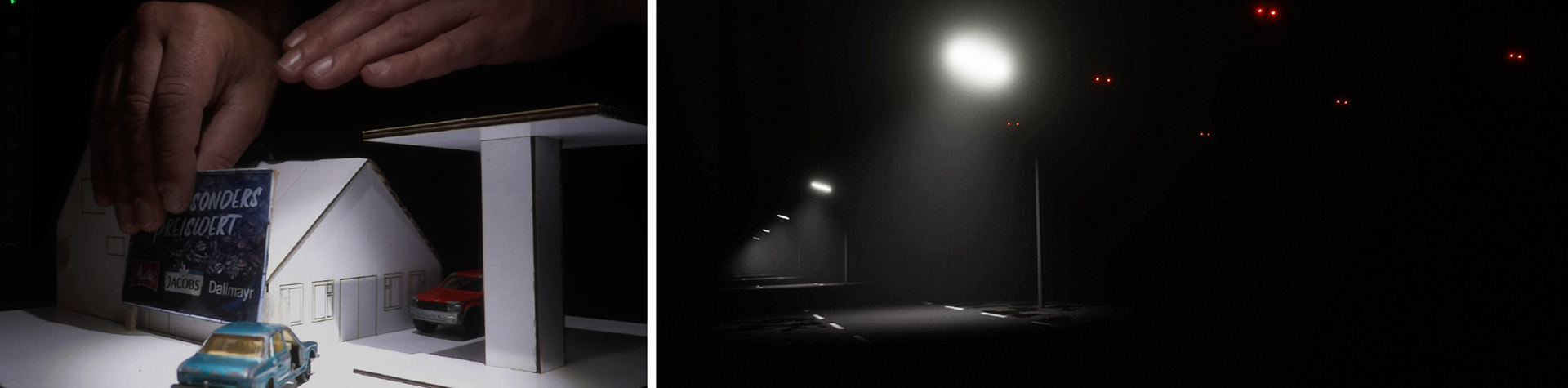 In 2022, the documentary performance Europadorp / Europadorf premiered, where a theatre maker, a musician and myself tell a story about a utopia in the Dutch-German borderland. In this performance I am exploring the use of Augmented and Virtual reality on stage.